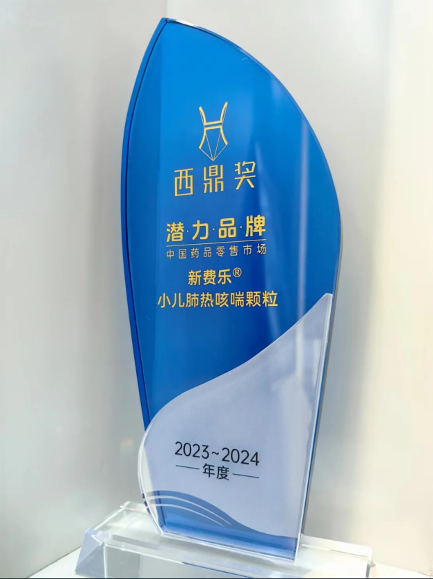 仲博cbin药业新费乐牌小儿肺热咳喘颗粒(4g)荣获“2023-2024年度中国药品零售市场潜力品牌”